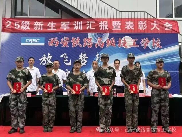 骄阳似火,挥汗如雨。2025年8月28日下午,西安铁路高级技工学校2025级新生军训汇报表演暨表彰大会在操场举行。