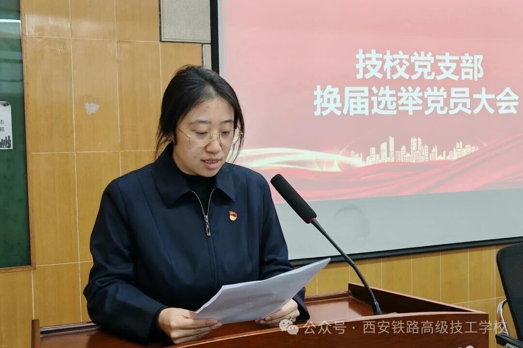 此次党支部换届选举大会严格遵循规范流程,全程秩序井然、组织严谨,充分彰显了党内民主的严肃性与规范性,进一步统一了全体党员思想认识,凝聚了技校党支部的战斗合力与发展共识。全体党员纷纷表示,将在新一届支部委员会的带领下,不忘初心、牢记使命,以更加饱满的热情、更加务实的作风投身教育教学与学校发展各项工作,为西安铁路高级技工学校高质量发展贡献坚实力量。