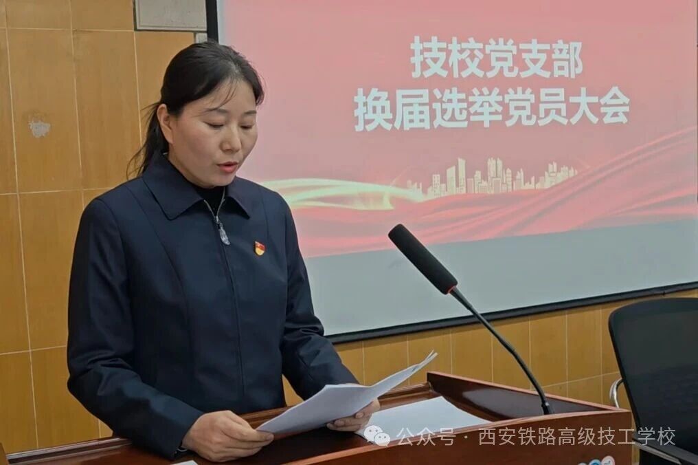 为强化学校党组织建设,充分发挥党支部战斗堡垒作用,根据《中国共产党基层组织选举工作条例》 及《西信公司党委关于基层党支部集中换届选举的通知》(西信党委〔2025〕23号)精神,2025年10月30日下午,西安铁路高级技工学校党支部换届选举党员大会在实习楼二楼培训室顺利举行。会议由梁豪同志主持,支部全体党员参会。